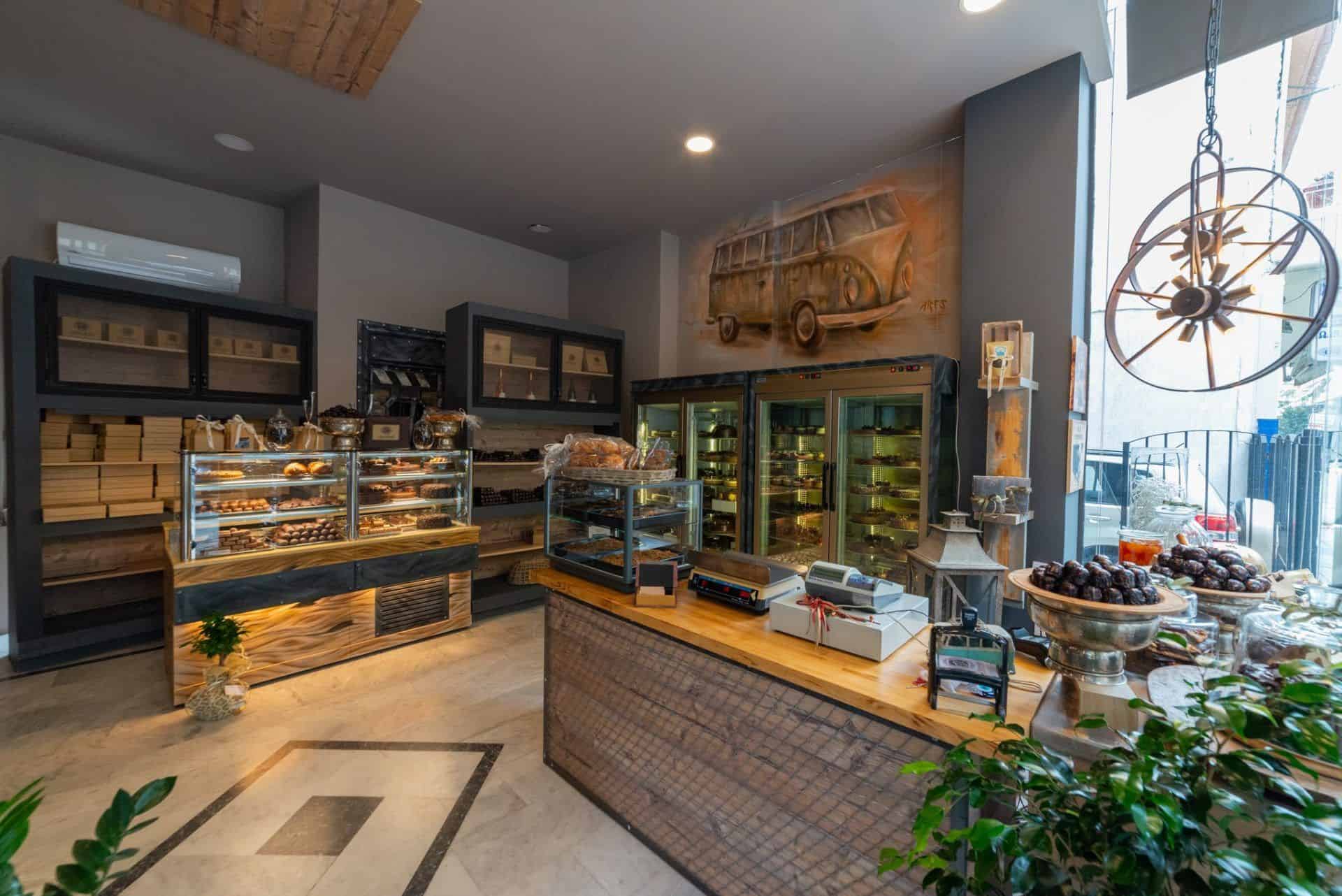 Ως χώρος αισθητικά είναι άψογος και τίποτα δεν θυμίζει την εικόνα ενός κλασικού ζαχαροπλαστείου. Έχει πολύ εντυπωσιακές ξύλινες επιφάνειες με πολλά μοντέρνα στοιχεία που αναδεικνύουν τόσο τον χώρο όσο και τις διακοσμητικές λεπτομέρειες.