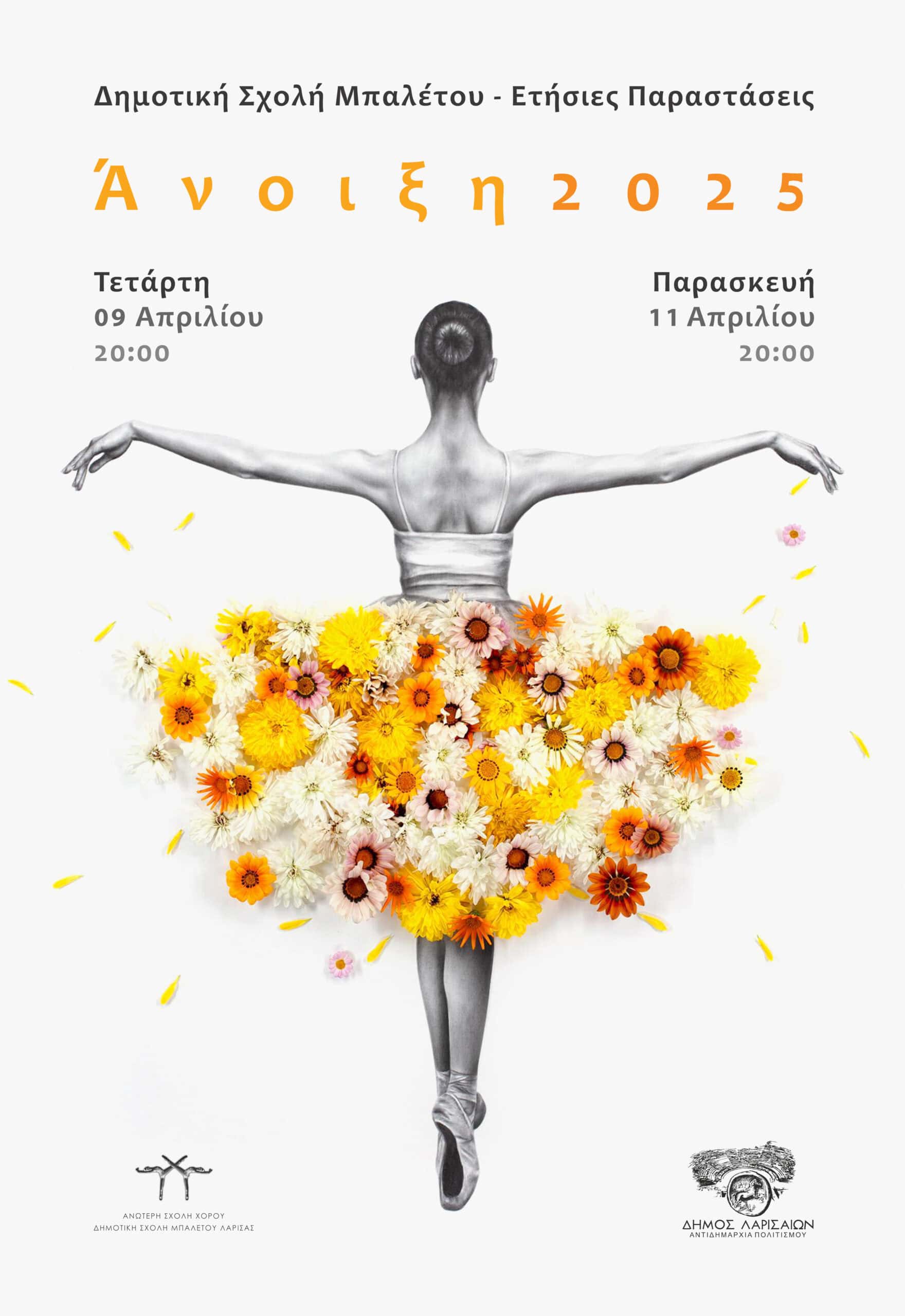 Με φωτεινή χορευτική διάθεση υποδέχεται την Άνοιξη η Δημοτική Σχολή Μπαλέτου και την γιορτάζει στις ετήσιες παραστάσεις της που θα πραγματοποιηθούν την Τετάρτη 9 Απριλίου και την Παρασκευή 11 Απριλίου, ώρα 20.00, στη Σκηνή Μπαλέτου.