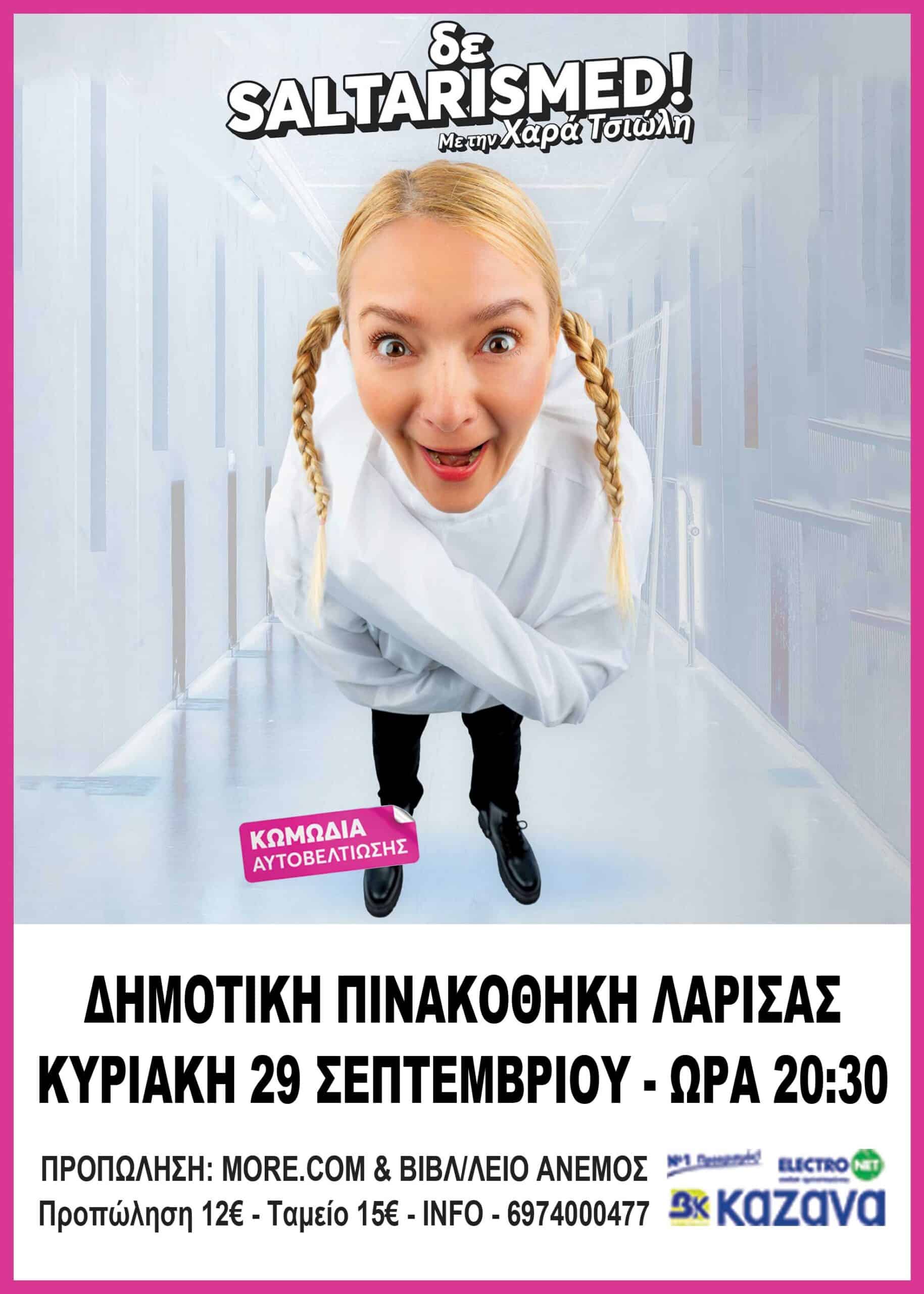 Είσαι σαλταρισμένος; Αποτυχημένος; Κακόκεφος; Μίζερος; Απένταρος; Είσαι βουτηγμένος στη μετριότητα και δεν έχεις καταφέρει ως τώρα στη ζωή σου να ξεχωρίσεις και να διακριθείς; Μην ανησυχείς! Η διάσημη influranger, Χαρά Τσιώλη, φέρνει για πρώτη φορά στην Ελλάδα τη νούμερο 1 μέθοδο αυτοβελτίωσης “δε Saltarismed” για δύο απολαυστικές βραδιές γέλιου στο Θέατρο CORONET.