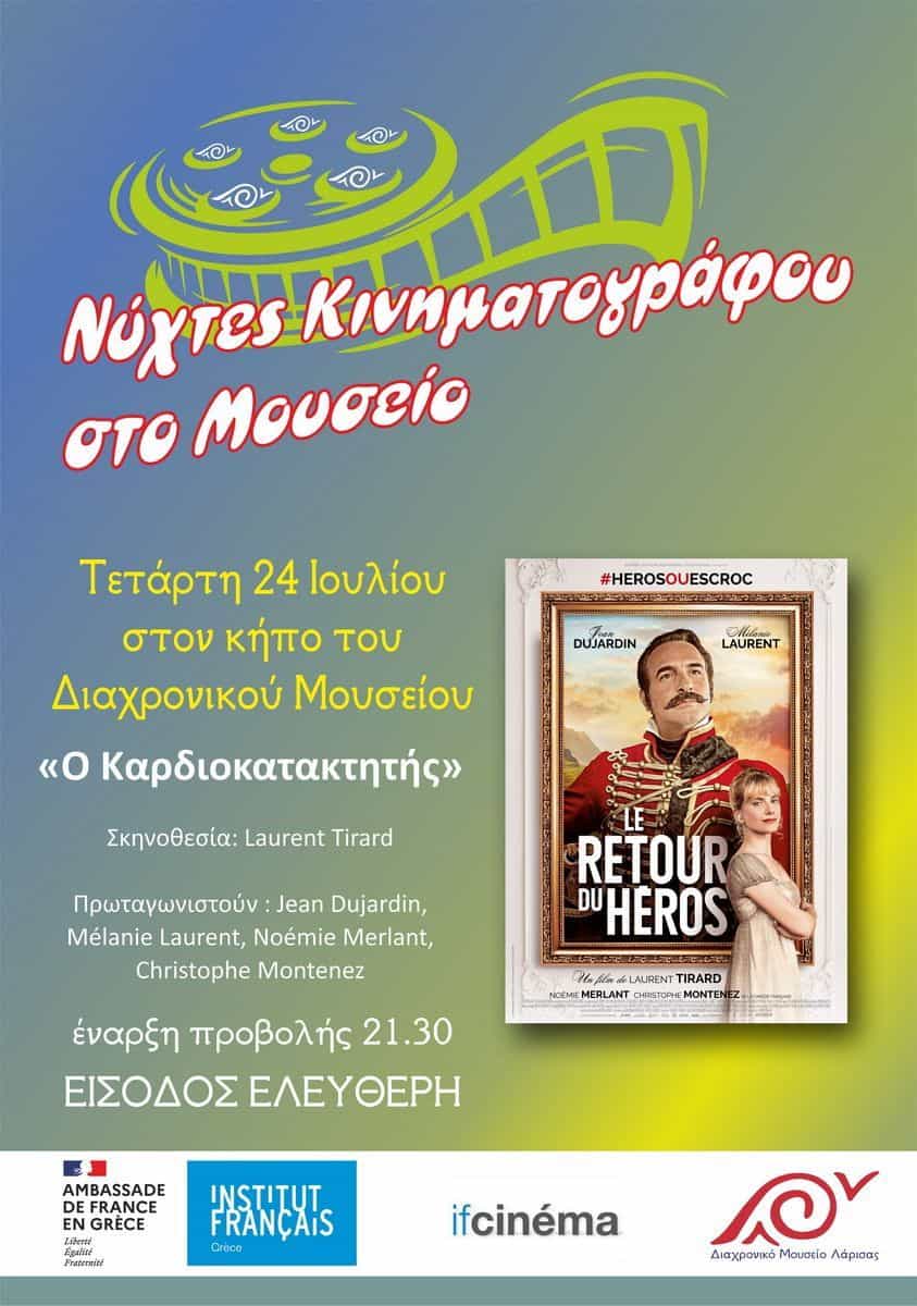 Νέο ciné-ραντεβού διοργανώνει την Τετάρτη 24 Ιουλίου στις 21.30 η Εφορεία Αρχαιοτήτων Λάρισας σε συνεργασία με το Γαλλικό Ινστιτούτο Λάρισας-Γαλλική Πρεσβεία. Στον κήπο του Διαχρονικού Μουσείου Λάρισας θα προβληθεί η κωμωδία: