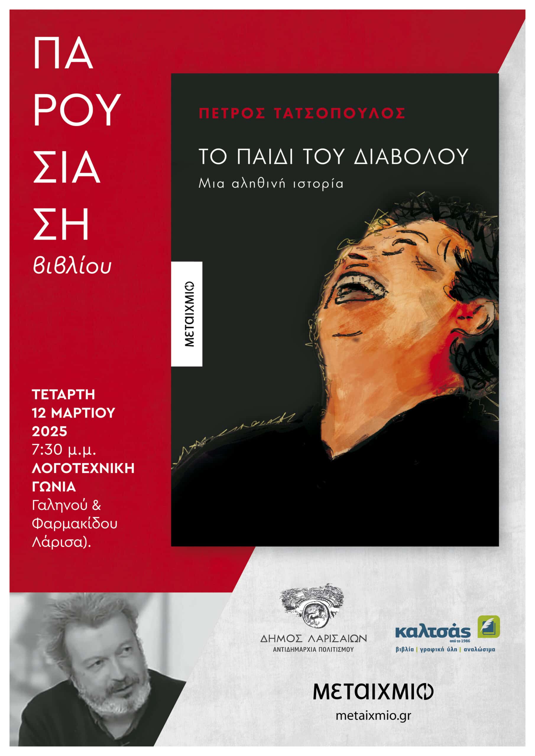 O Πέτρος Τατσόπουλος συναντά τους αναγνώστες του στη Λάρισα με αφορμή το νέο του βιβλίο Το παιδί του Διαβόλου