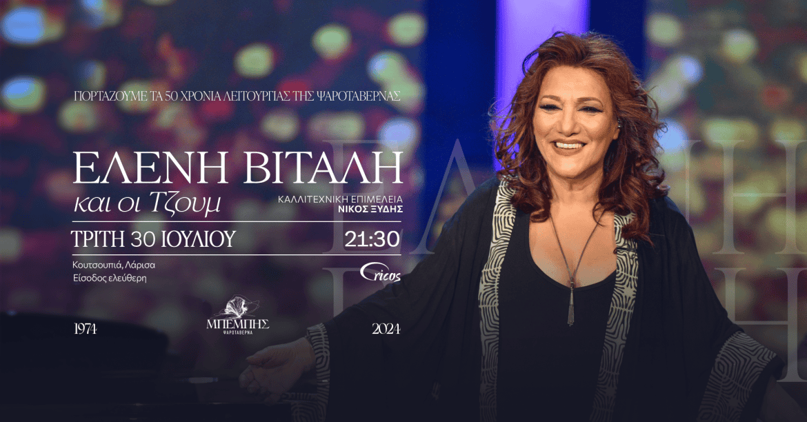 Ανταποδίδοντας την αγάπη του κόσμου διοργανώνει μια συναυλία-γιορτή στην Παραλία Κουτσουπιάς την Τρίτη 30 Ιουλίου στις 21:30 με την μοναδική Ελένη Βιτάλη!