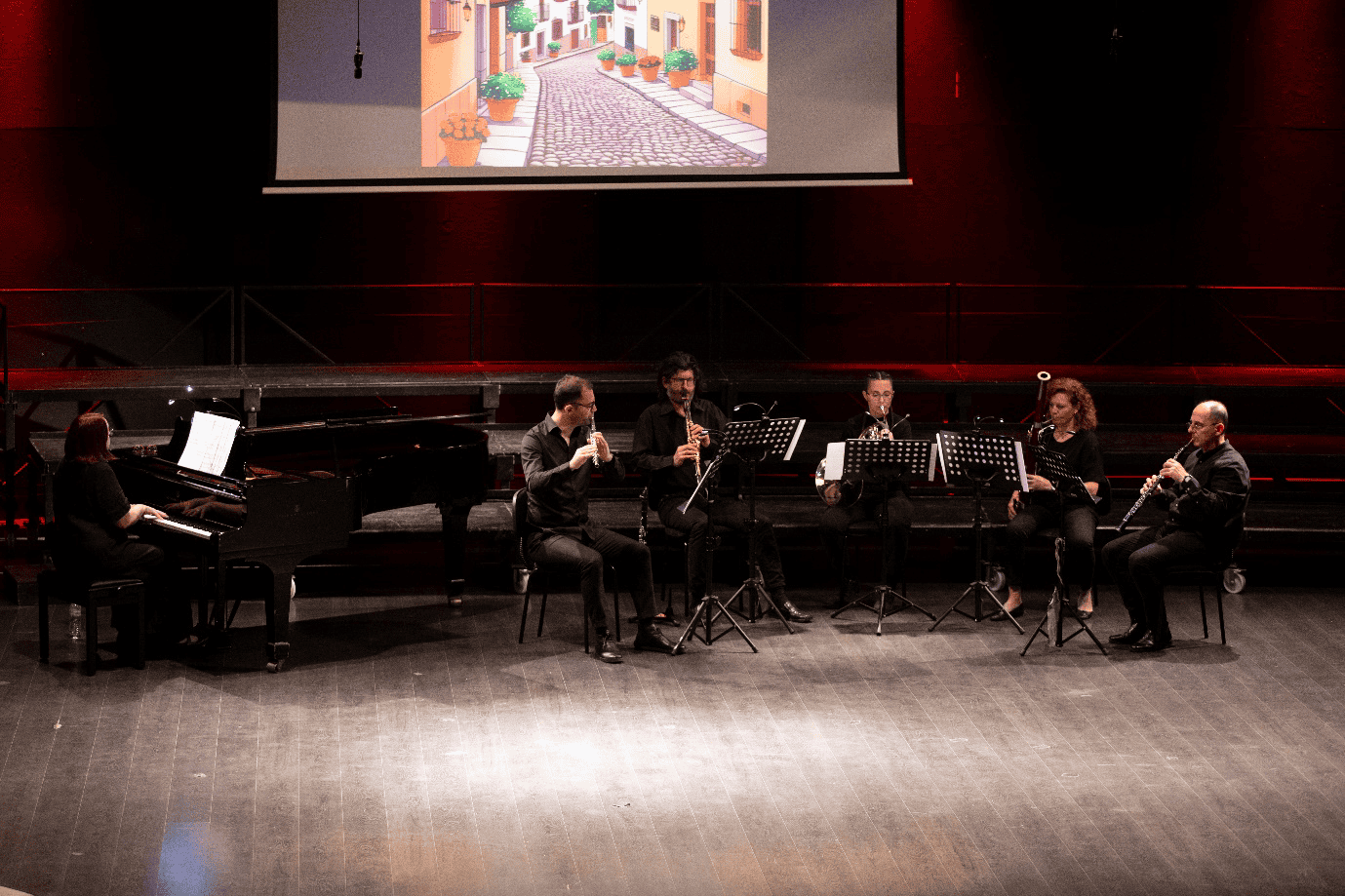 Γιώργος Τσιαρδάκας (φλάουτο),  Ευδοξία Αποστολίδου (φαγκότο), Στέλιος Κοτρώτσιος (κλαρινέτο), Δημήτρης Χατζούλης (όμποε), Έφη Μηνά (κόρνο) και στο πιάνο η Ιωάννα Σιοπούδη.