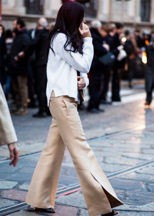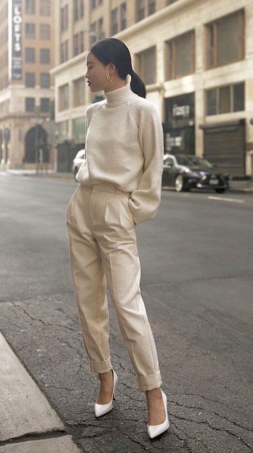 Το άσπρο-μαύρο του χειμώνα γίνεται μπεζ-λευκό την άνοιξη. Εννοώ ότι ο πιο εύκολος και safe συνδυασμός για το μπεζ παντελόνι είναι το λευκό top. Πουλόβερ, πουκάμισο ή ένα απλό t-shirt είναι η τέλεια λύση για καθημερινά stylish ντυσίματα. Σε αυτό τον συνδυασμό μπορείς να προσθέσεις μαύρα αξεσουάρ και χρυσά κοσμήματα.