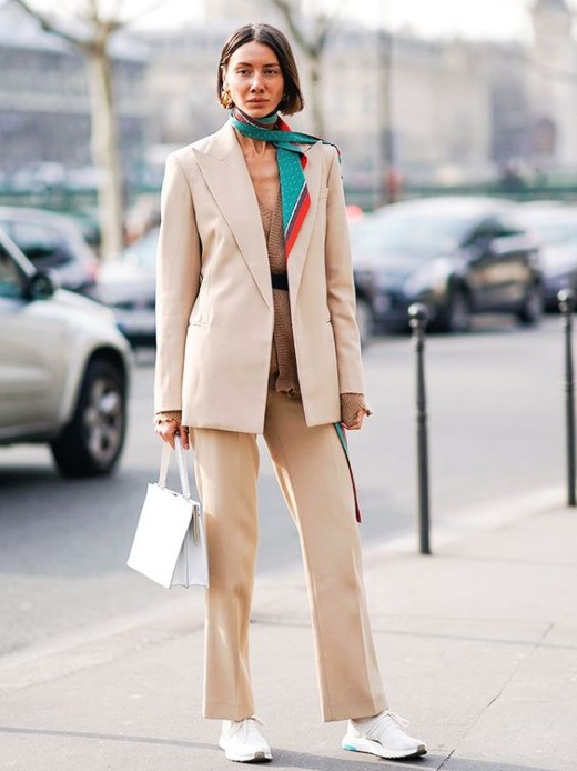 To μπεζ ανήκει στην μεγάλη κατηγορία των earthn tones, που όπως σου έχω ήδη γράψει, φέτος είναι huge τάση. Κινήσου, λοιπόν, σε αυτά τα χρώματα και δημιούργησε ένα earth tone σύνολο που θα το απογειώσεις με χρωματιστό φουλάρι και statement σκουλαρίκια.