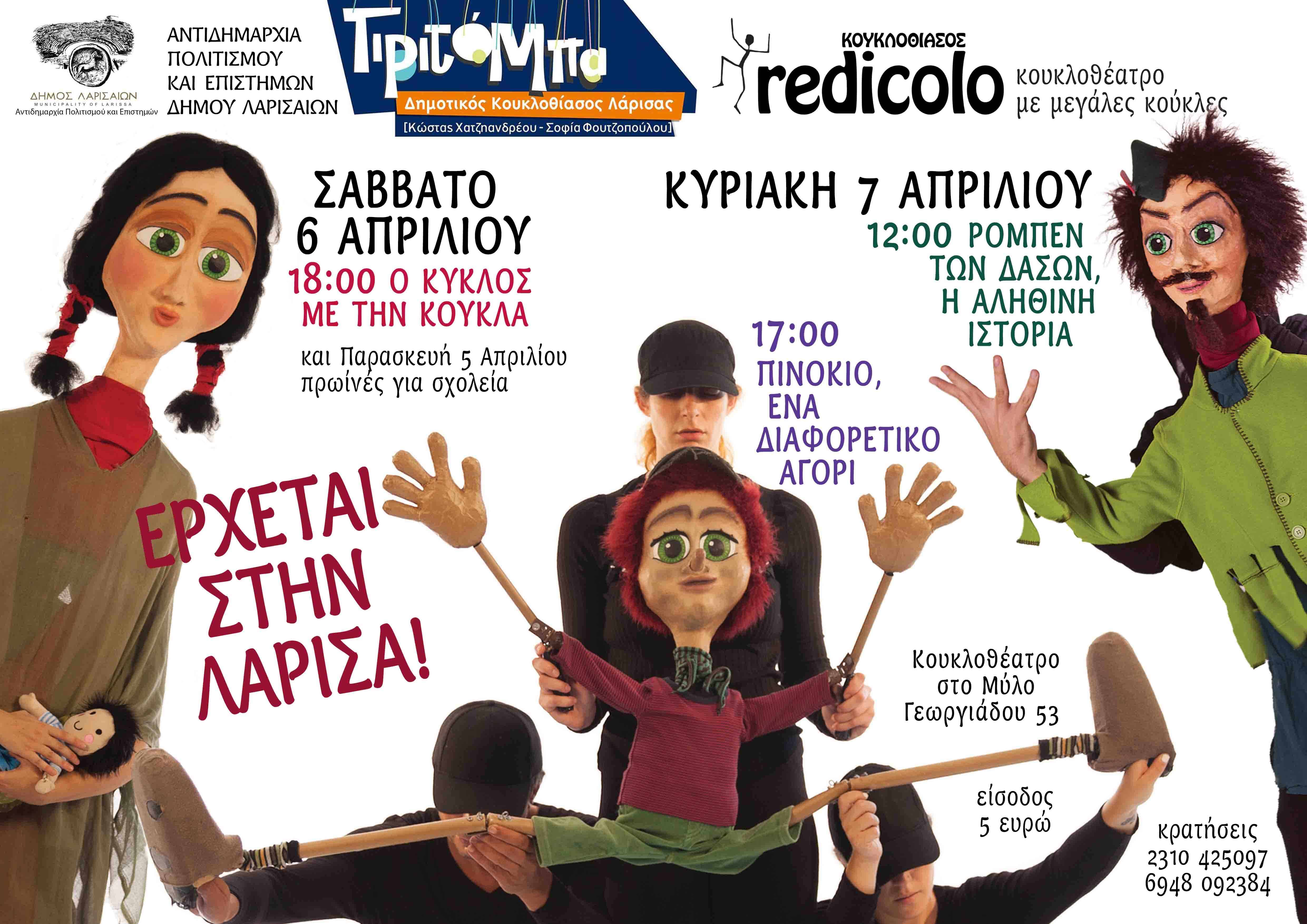 Ο Κουκλοθίασος REDICOLO, φιλοξενούμενος του Δημοτικού Κουκλοθεάτρου ΤΙΡΙΤΟΜΠΑ και της Αντιδημαρχίας Πολιτισμού και Επιστημών Δήμου Λαρισαίων, επισκέπτεται την πόλη της Λάρισας για πέμπτη χρονιά, με τρεις διαφορετικές παραστάσεις κουκλοθεάτρου για το κοινό αλλά και για τα σχολεία.