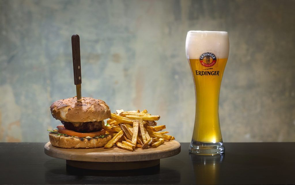 Επίσης, παγωμένη μπύρα με ονειρικό burger φρεσκοκομμένες πατάτες αφήνοντας σε να σε συνεπάρει και μόνο από την απίθανη μυρωδιά του!