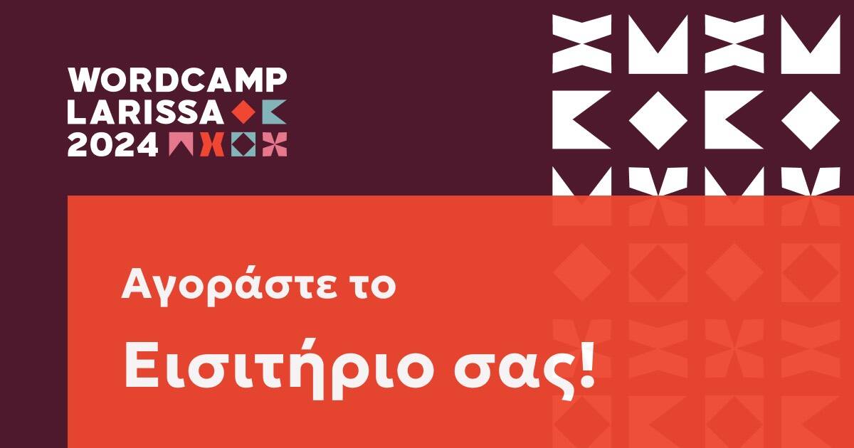 Οι ενδιαφερόμενοι μπορούν να αποκτήσουν το δικό τους εισιτήριο για το WordCamp Larissa που θα πραγματοποιηθεί 9-10/11 στο Πάρκο Καινοτομίας JOIST, μέσα από την επίσημη σελίδα της διοργάνωσης, ενώ προβλέπεται και ειδική έκπτωση για φοιτητές και ανέργους.